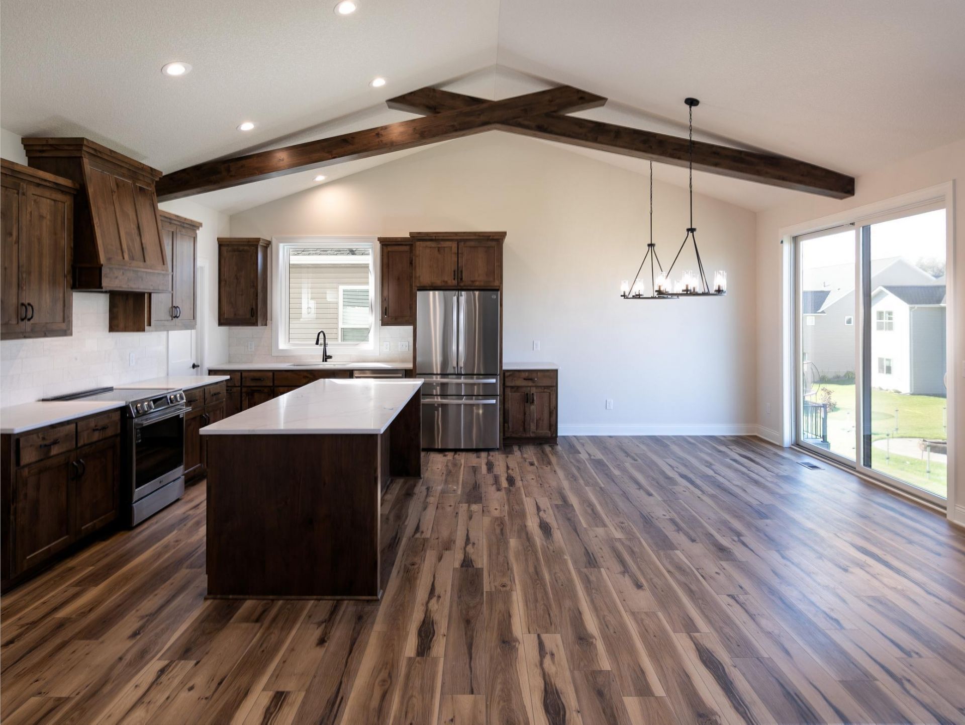 Pinnacle Family Homes proudly presents The Ashville, a beautifully designed rambler that blends timeless elegance with modern touches. This thoughtfully crafted home features 4 bedrooms and 3 bathrooms, offering both comfort and functionality. The open-concept main floor is highlighted by vaulted ceilings and expansive Andersen windows, filling the space with abundant natural light. The kitchen is designed to impress, featuring 42 upper cabinets, a large center island, and a spacious walk-in pantry?perfect for everyday living and entertaining. The finished lower level adds even more living space, complete with a generous family room ideal for gatherings and relaxation. This home is currently under construction. Visit our model home to learn more about this property and explore the two remaining buildable lots.