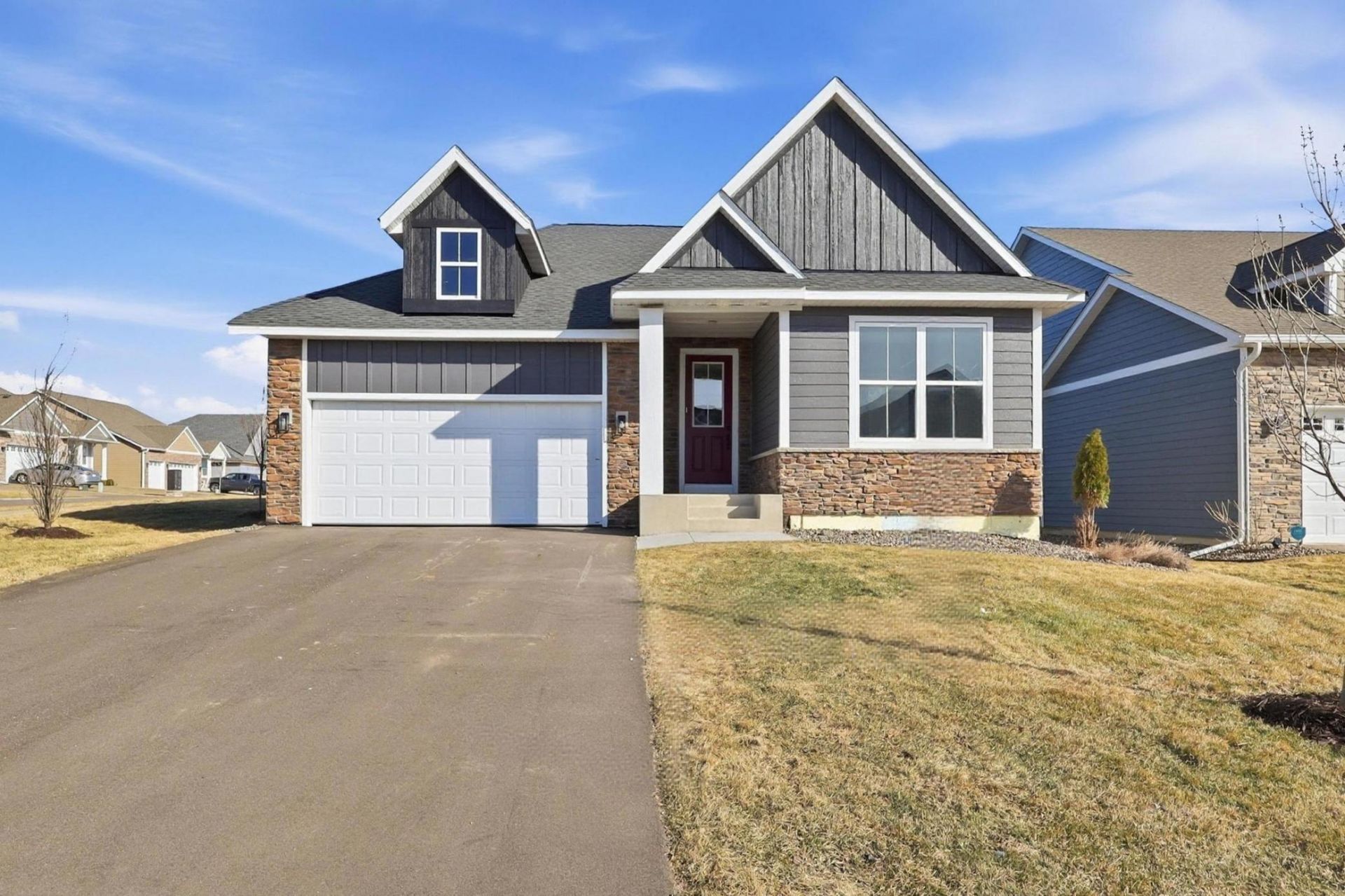 Welcome to the Sonoma model, a craftsman-style home that blends architectural beauty with effortless main-level living. This thoughtfully designed floor plan offers 3 bedrooms and 2 bathrooms on the main level, along with all living facilities conveniently located on one floor. The open layout makes exceptional use of square footage filled with natural light from large windows and enhanced by high-end design finishes throughout. The lower level expands the living space with an additional bedroom, bathroom, private office, and a second living area, plus ample storage for everything you need. An oversized two-stall garage provides extra room for storage, while the HOA handles lawn care and snow removal for truly low-maintenance living. Architecturally stunning, thoughtfully planned, and beautifully finished, this Sonoma model offers comfort, elegance, and convenience in one exceptional package. Ideally located with quick access to both 35 and cedar. This main-level living home delivers both style and functionality.