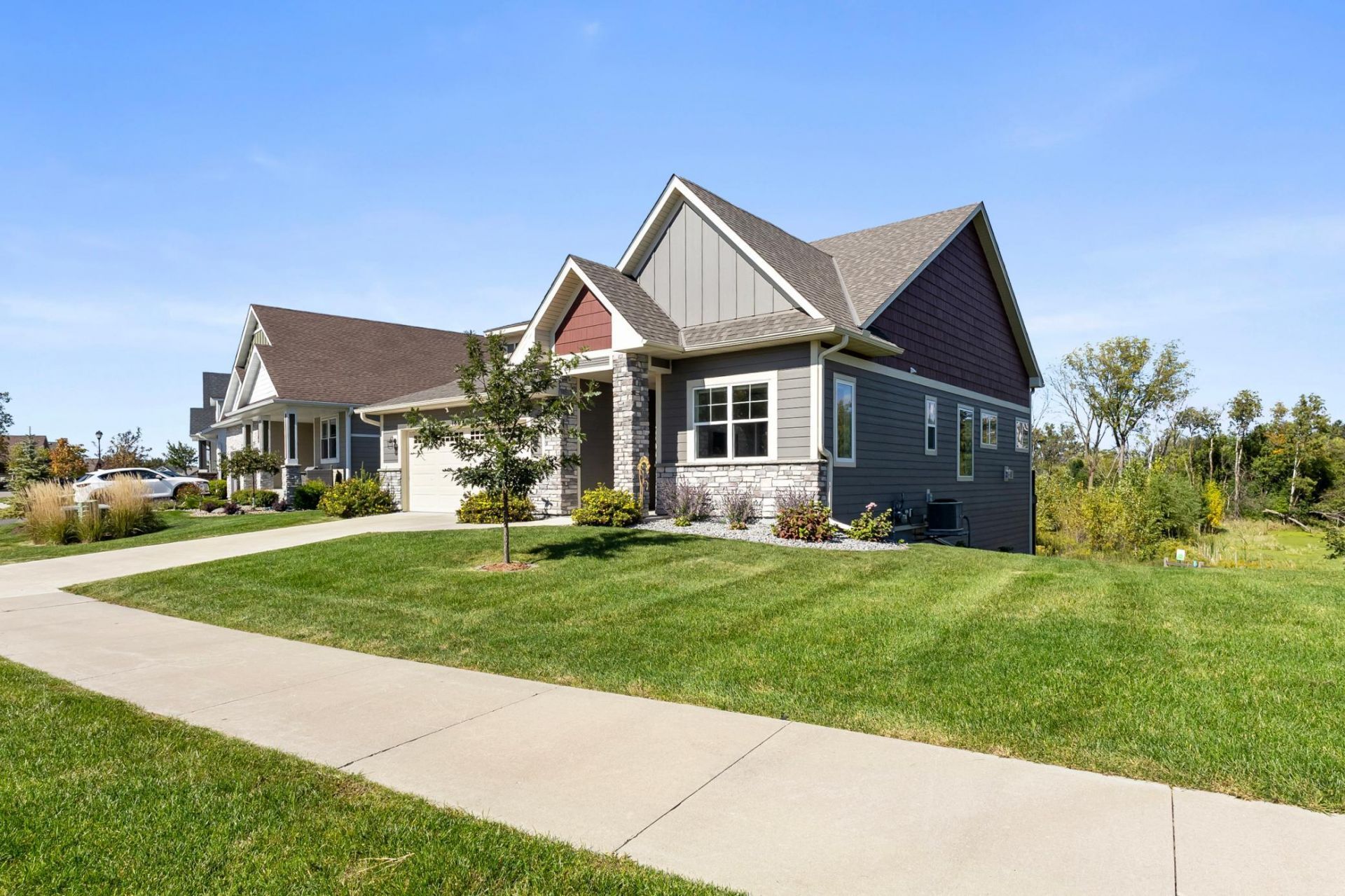 Welcome to this stunning custom-built home, perfectly situated in the highly sought-after Kenwood Hills neighborhood of Lakeville. Built in 2020, this beautifully designed one-story home with a finished walk-out basement offers 2,723 finished square feet of thoughtfully crafted living space. From the moment you step inside, you'll be greeted by an abundance of natural light and a bright, open-concept layout. The gourmet kitchen is the heart of the home, featuring timeless white cabinetry, quartz countertops, stainless steel appliances, and an oversized center island?perfect for entertaining or everyday living. The adjacent dining area opens to a spacious deck overlooking a serene pond, creating the ideal setting for morning coffee or evening relaxation. The main-level primary suite offers a private retreat with a tiled walk-in shower, generous walk-in closet, and a convenient pass-through to the laundry room for ultimate functionality. With three bedrooms plus a versatile bonus room ideal for a home office or gym, this home provides flexibility to fit your lifestyle. The finished walk-out lower level expands your living space and includes a private sauna?perfect for unwinding year-round. Additional highlights include a fully insulated and finished garage and high-quality craftsmanship throughout. Enjoy an unbeatable location just minutes from restaurants, shopping, grocery stores, healthcare, trails, and quick access to I-35 for an easy commute. This move-in-ready home blends modern design, comfort, and convenience?don't miss your opportunity to make it yours.