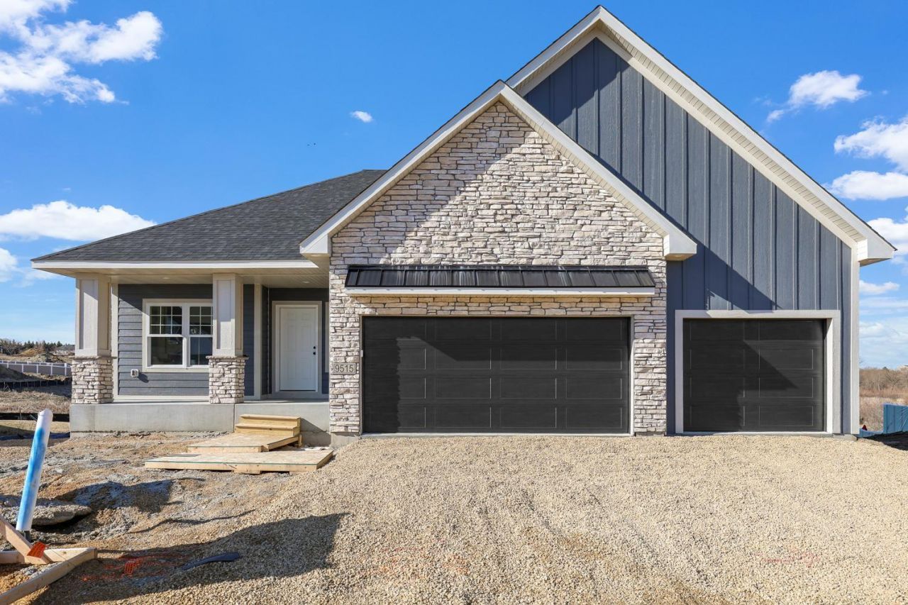 Beautifully designed Eternity Homes rambler offering 4 bedrooms and 3 bathrooms, perfectly blending comfort, style, and functionality. The main level features an open-concept layout with vaulted ceilings, creating a bright and spacious feel throughout. The kitchen is thoughtfully designed with high-end finishes, ample cabinetry, and generous counter space, making it ideal for both everyday living and entertaining. Two bedrooms are located on the main level, including a private primary suite complete with a full bathroom. The finished lower level provides additional living space with a large family room and two more bedrooms, offering flexibility for guests, work-from-home needs, or hobbies. Located within the highly desirable Lakeville School District, this home combines quality craftsmanship with a convenient and sought-afterlocation.