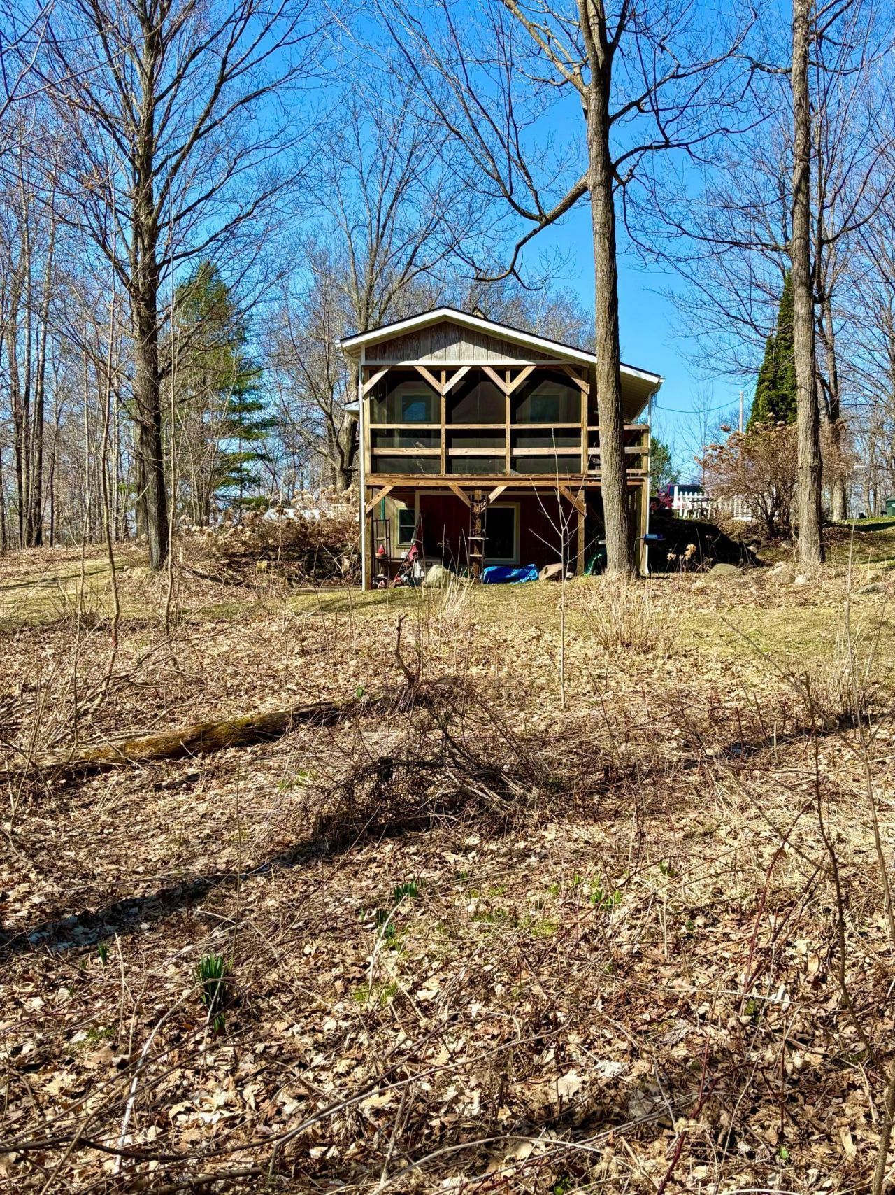 Set on highly sought-after Bone Lake, this enchanting 3 BR/ 2 BA home offers a rare blend of lake access, privacy, and natural beauty. Tucked at the end of a quiet dead-end road on approximately 1.44 acres, the setting feels like your own private retreat, surrounded by mature maples, lush perennial gardens, and a true secret garden atmosphere.From early spring through late summer, a parade of color unfolds across the property, with thoughtfully curated plantings including lilacs, phlox, tulips, irises, lilies, and hydrangeas, creating a landscape full of charm, surprises, and peaceful moments around every corner. Multiple outdoor sitting areas, walking paths, a newer screened porch, and a covered deck spanning the length of the home invite you to slow down and take it all in.Enjoy shared ownership of 170 feet of lakeshore on Bone Lake, complete with a newer 60-foot dock. Inside, the home features an open and inviting layout with vaulted ceilings, abundant natural light, and a cozy wood stove for year-round comfort. The walkout lower level leads to a private patio, perfect for quiet mornings or evening unwinding.Recent updates include a newer furnace, hot water heater, and a 2018 addition featuring the primary bedroom and an expanded lower-level family room. Solar power adds efficiency, while a whole-house generator provides peace of mind.A rare opportunity to own a truly special property, where lake living meets tucked away country charm. Spend your days enjoying this full recreation lake, take a sunset cruise to a nearby boat up restaurant for dinner, then return home to the quiet beauty of the woods. Every detail invites you to relax, explore, and feel at home.