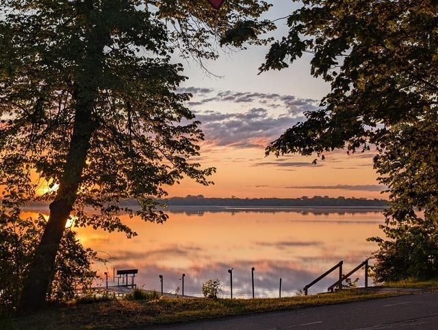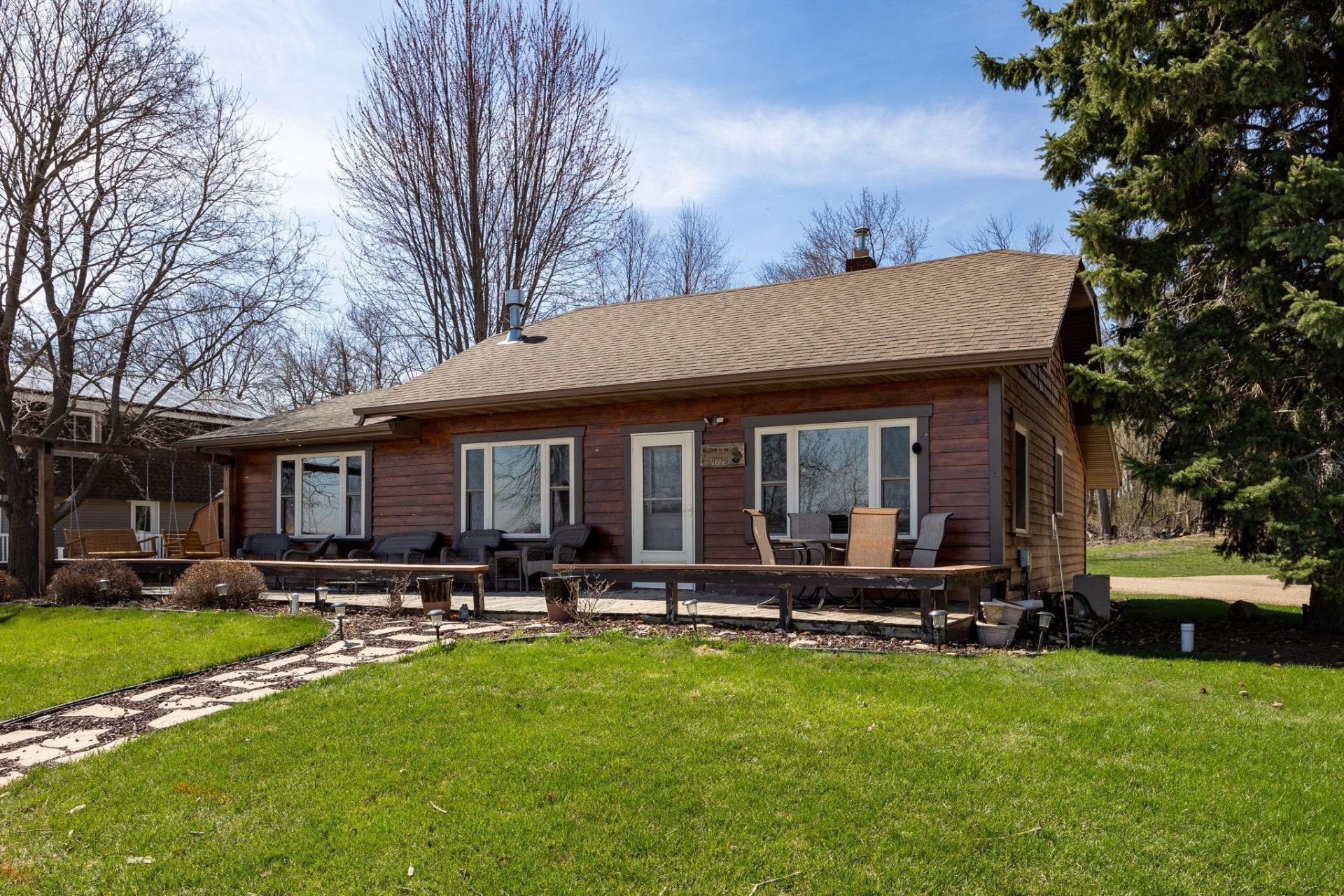 Well maintained and move in ready, this 3-bedroom home sits directly across from the lake and offer beautiful surroundings with exceptional convenience, and private 60 x 18 shoreline. The home features a functional layout, a bright kitchen with Corian countertops, full main floor bath with newer cabinet & Corian countertop, new paint, and comfortable living spaces with room to relax. Step outside to enjoy your huge deck, with walking path giving direct access to the properties lakeshore/beach area, and has crushed rock, step to the lake/dock and is a great area for these evening bonfires. The convenient location features nearby parks, and local amenities. The spacious backyard leads to the detached 2+ car garage, new 12x10 shed, and plenty of extra parking spaces for your guests, trailers & toys. Window inserts are less than 10 years old, roof is 6 years old and the cedar siding has been resealed in 2025. With its solid condition, usable outdoor space and desirable location, this property is an excellent opportunity for anyone seeking value for lakeshore property.Interior Improvements include - New Corian Countertops, Updated Main Floor Bath and Finished Lower-Level Bath, Fresh Paint Throughout the Main Floor, Installed Washer & Dryer Hook Up Exterior Improvements include - New 12 x 10 Storage Shed, Regraded Driveway & Added Additional Driveway behind the Garage, Installed Walk-Way to Lake & Improved Lake Shore Area, Re-stained, and Sealed the Cedar Siding.
