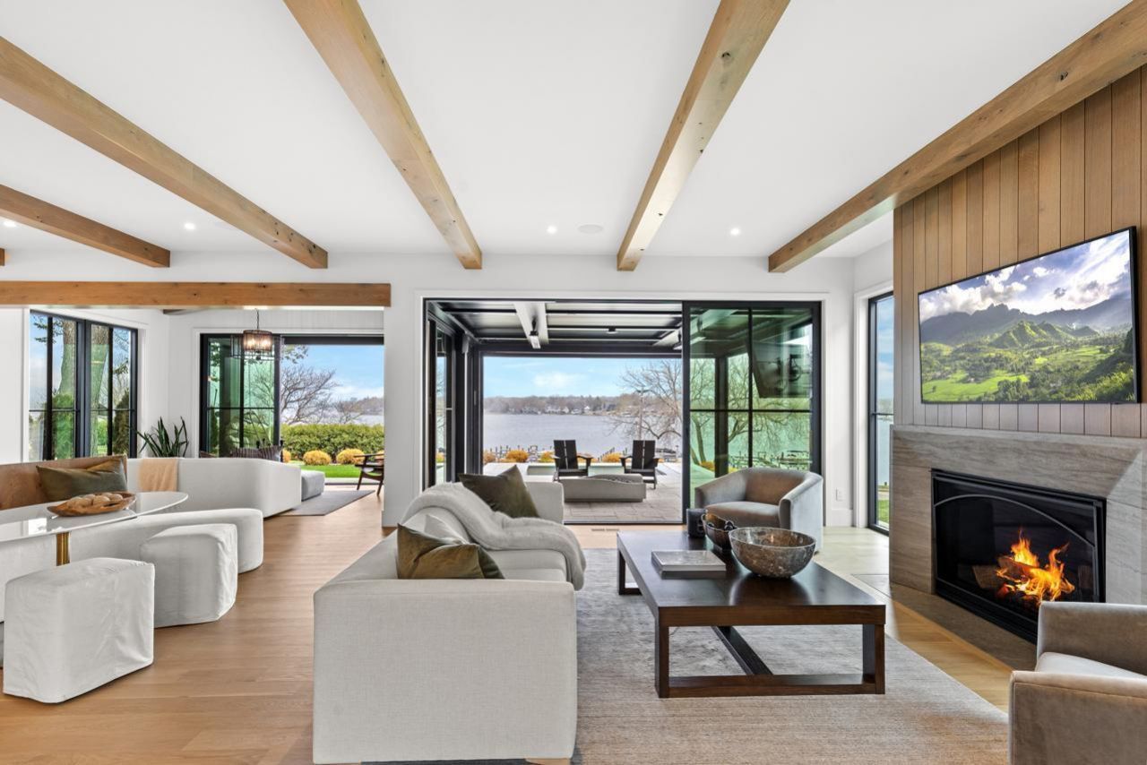 Breathtaking Peter Eskuche + Mikan collaboration offering the highest level of finish throughout this completed new construction masterpiece! Enjoy the stunning architectural details and open flowing floorplan offering walls of windows showcasing gorgeous views overlooking Excelsior Bay. The main-level features light + bright spaces; gourmet kitchen with high-end appliances, coffee bar, prep area and walk-in pantry. Spacious family room with sliding glass doors that open to the large porch with phantom screens + electronic pergola, dipping pool/hot tub and unmatched water views, creating the perfect blend of indoor + outdoor living! The upper-level offers a loft with built-ins and beverage fridge; bonus room with fireplace + lake views; office area; two guest bedrooms and spacious primary suite with spa-like bathroom (heated floors)! Lower-level featuring unparalleled amenities including the large family room + game area; wet bar with beverage fridges; exercise room; sauna and golf simulator. Extra-deep 2-car garage (heated, sink, water spigot). Ideally located in the heart of Excelsior just steps to shops, restaurants and all the amenities downtown has to offer! Truly a must see!