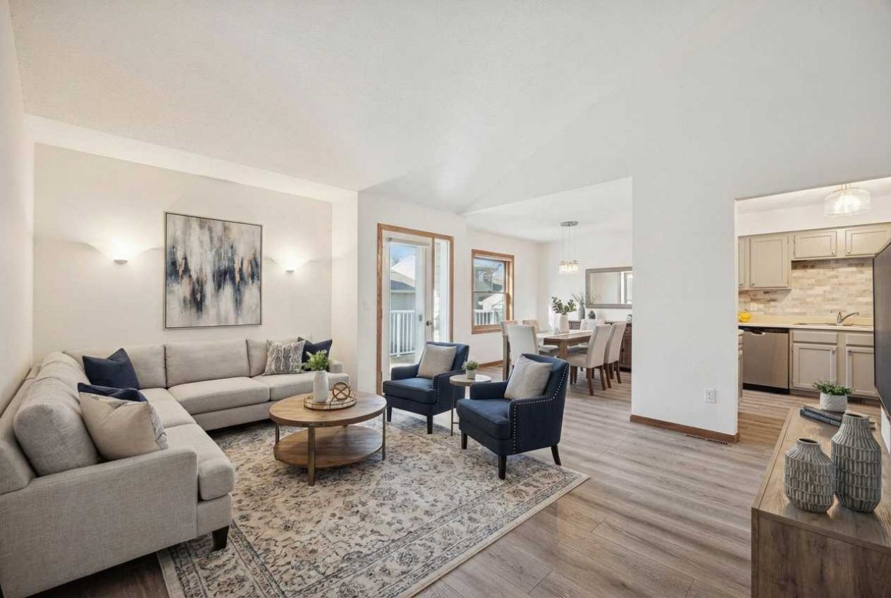 Welcome to this beautifully maintained end unit, split-level townhouse in Eagan, set in the highly desirable 196 School District. This home offers 3 bedrooms, 2 bathrooms and a 2-car garage. Bright main level features an open layout with vaulted ceilings, spacious living area and a dining space with easy deck access- ideal for relaxing or entertaining. Kitchen includes stainless steel appliances and updated cabinetry. Upstairs, you'll find two comfortable bedrooms and a full bath with modern finishes. Lower level offers flexible third bedroom perfect for a home office, a cozy family room with walk-out access and a stylish half bath with charming barn doors hiding the laundry. Enjoy the deck overlooking green space. Unit has water softener and water purification system. Located just minutes from I-35E and nearby Lebanon Hills and Blackhawk Park, this move-in-ready home offers comfort, style and a great Eagan location.