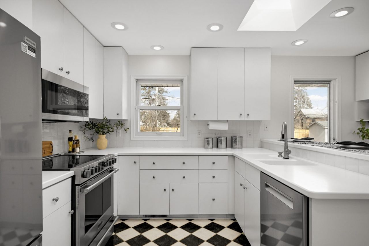 Thoughtfully refreshed and truly move-in ready, this 3-bedroom, 2-bath mid-century rambler offers approximately 2,300 finished square feet and $40,000+ improvements completed in 2025-2026. Built in 1957, the home blends timeless architectural character with meaningful modern updates. The entire main level features beautifully refinished hardwood floors (2025), fresh interior paint (2026), and tile in the kitchen and full bath. All three bedrooms are conveniently located on the main floor, each with hardwood flooring and ceiling fans, including a spacious primary bedroom with an oversized closet. The light-filled living and dining areas form an inviting L-shaped layout, with windows at both the front and back of the home that allow natural light to flow throughout the main living spaces. The living room showcases plantation shutters and a wood-burning fireplace, while the dining room offers built-in cabinetry, wainscoting, and a sliding glass door that opens to the backyard - creating seamless indoor-outdoor flow. The kitchen is bright and welcoming, enhanced by a skylight and two windows that bring in abundant natural light. It features stainless steel appliances, peninsula with breakfast bar, generous pantry, and abundant cabinet storage (refrigerator and microwave new in 2025; range and dishwasher updated in 2024). Major mechanical improvements provide significant peace of mind, includingnew furnace and humidifier (2026) and new water heater (2025). Washer (2022) and dryer (2025) also are updated. The finished lower level offers flexible living space with brand-new carpet and fresh paint (2026), a second wood-burning fireplace, built-in cabinetry, multiple closets, a large laundry/storageroom with cedar closet, and a 3/4 bath. Outside, enjoy a flat backyard with large paver patio, irrigation system and storage shed, all fully enclosed with a beautiful cedar privacy fence installed in 2025. The attached two-car garage benefits from partial enclosure along two sides, helping moderate seasonal temperature swings. Drain tile system adds additional functionality and peace of mind. Located in the highly sought-after Edina School District, this home offers classic style, thoughtful updates, and exceptional functionality in a desirable location. Minutes to 50th & France and the Grandview area, with easy freeway access to downtown Minneapolis and St. Paul. Pre-inspected for Buyer's peace of mind.