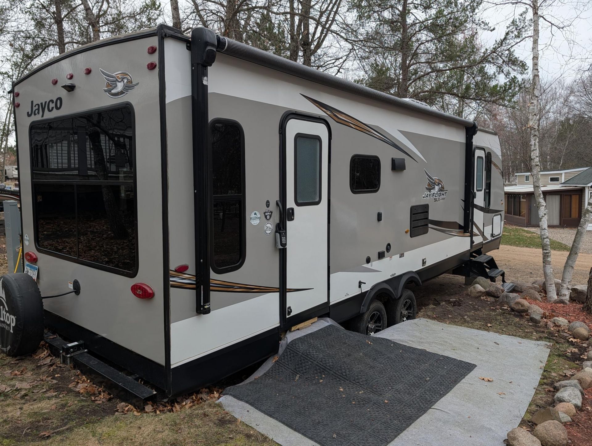 Are you looking for a privately owned campsite with low seasonal dues and lots of shared amenities? Well, here's beauty. Located in Whitebirch Exclusive RV & Camping Resort - Cluster 1 has a rustic woodsy feel. Included with the lot is a 2021 Jayflight 30ft Camper, MN Room, tiered decking leading to a firepit area. Step into the camper to modern elegance! Immaculate interior has 2 recliners, full sleeper sofa, dedicated dining area, andthoughtfully laid out kitchen. The pass thrubathroom has skylight over a roomy shower, camper toilet and tons of built in storage. Queen size bed has storage underneath and more storage above bed, small TV completes the bedroom. A few steps away is the bunkhouse/MN room for more living space and has a futon (for extra sleeping), table, lamp, TV, mini fridge is included. Also included are the 4 chairs around fire pit. Excluded from the sale: Golf cart, 4 chairs and table by MN room, swing near fire pit and all dishes. Priced right, so come take a look at your new get away.