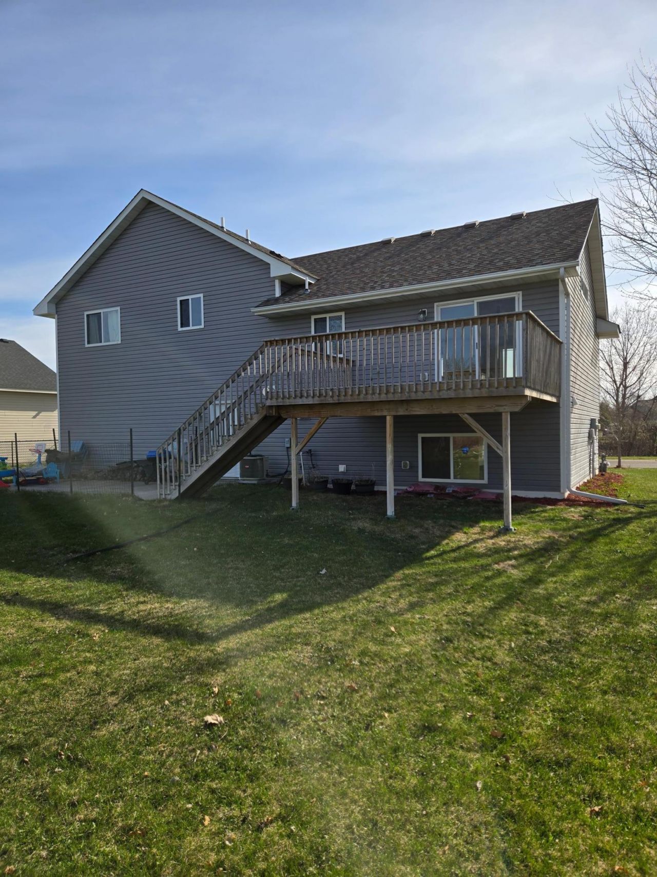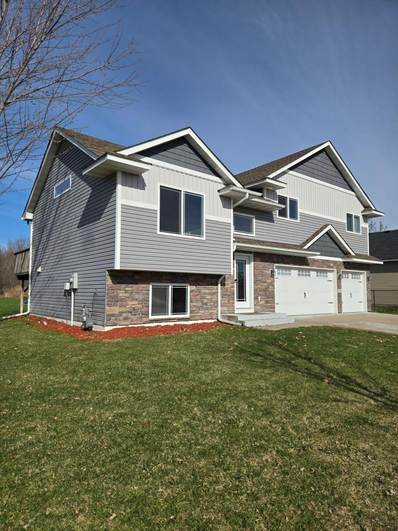 Better than new construction! This stunning, like-new home is ideally located just one mile from I-35, offering both convenience and comfort. Featuring 3 bedrooms and 2 bathrooms all on one level, the open-concept layout is enhanced by soaring vaulted ceilings and an abundance of natural light.The private primary suite boasts a beautiful suite bath with double sinks, creating a true retreat. Throughout the home, you'll find impressive finishes including crisp white enameled woodwork complemented by rich walnut-stained cabinetry, plus a spacious kitchen pantry for added functionality.Car enthusiasts and hobbyists will love the oversized, heated and insulated 3-car garage, complete with 220v 50-amp hookups. Step outside to enjoy the large deck with a 25x12 concrete patio, well-maintained lawn, fire pit, and a playset that stays?perfect for relaxing or entertaining.Located near schools, parks, shopping and I35 for those commuters.